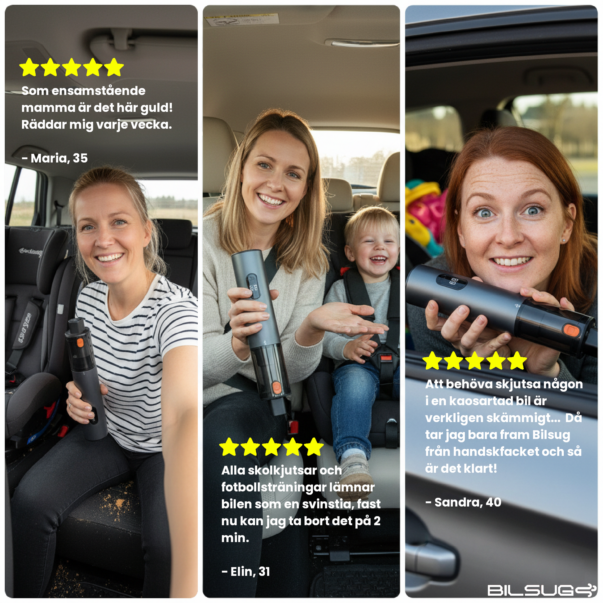 Ja! Bilsug är designad för att vara smidig och enkel att använda, även med bara en hand ledig. Den är lätt och kompakt, perfekt för stressiga vardagar.